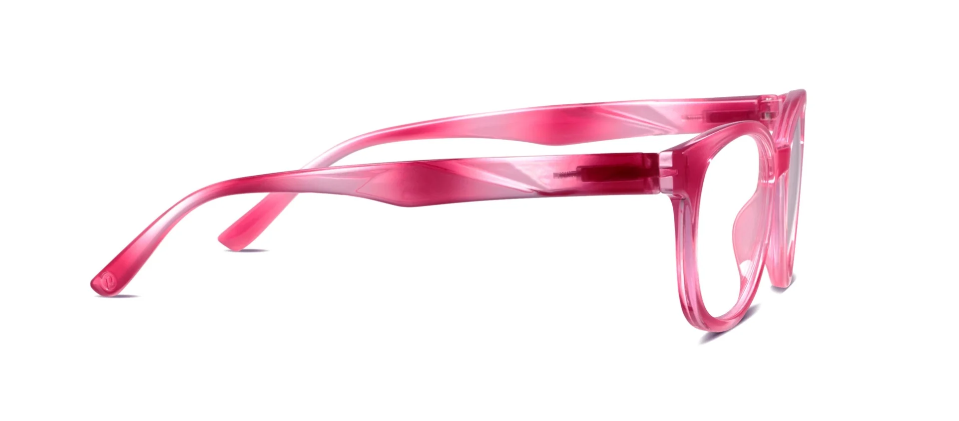 At first glance, Virginia’s eye-catching colors capture attention. Look closer, and you just might get lost in the dimensional swirls of pink, teal, or clear. Unique faceted temples add an angular edge to the soft square frame shape. When it all comes together, Virginia becomes a style unlike any other.