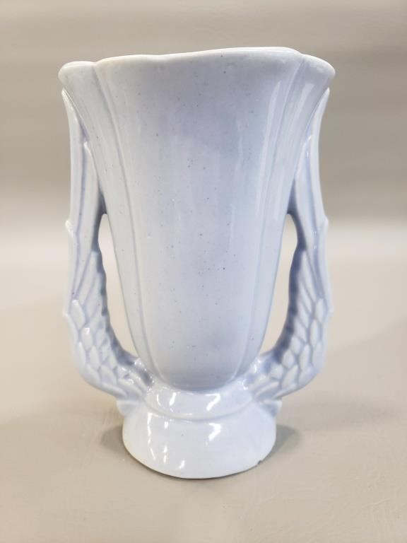 Vintage Niloak robins egg blue 2 handles vase- winged victory.